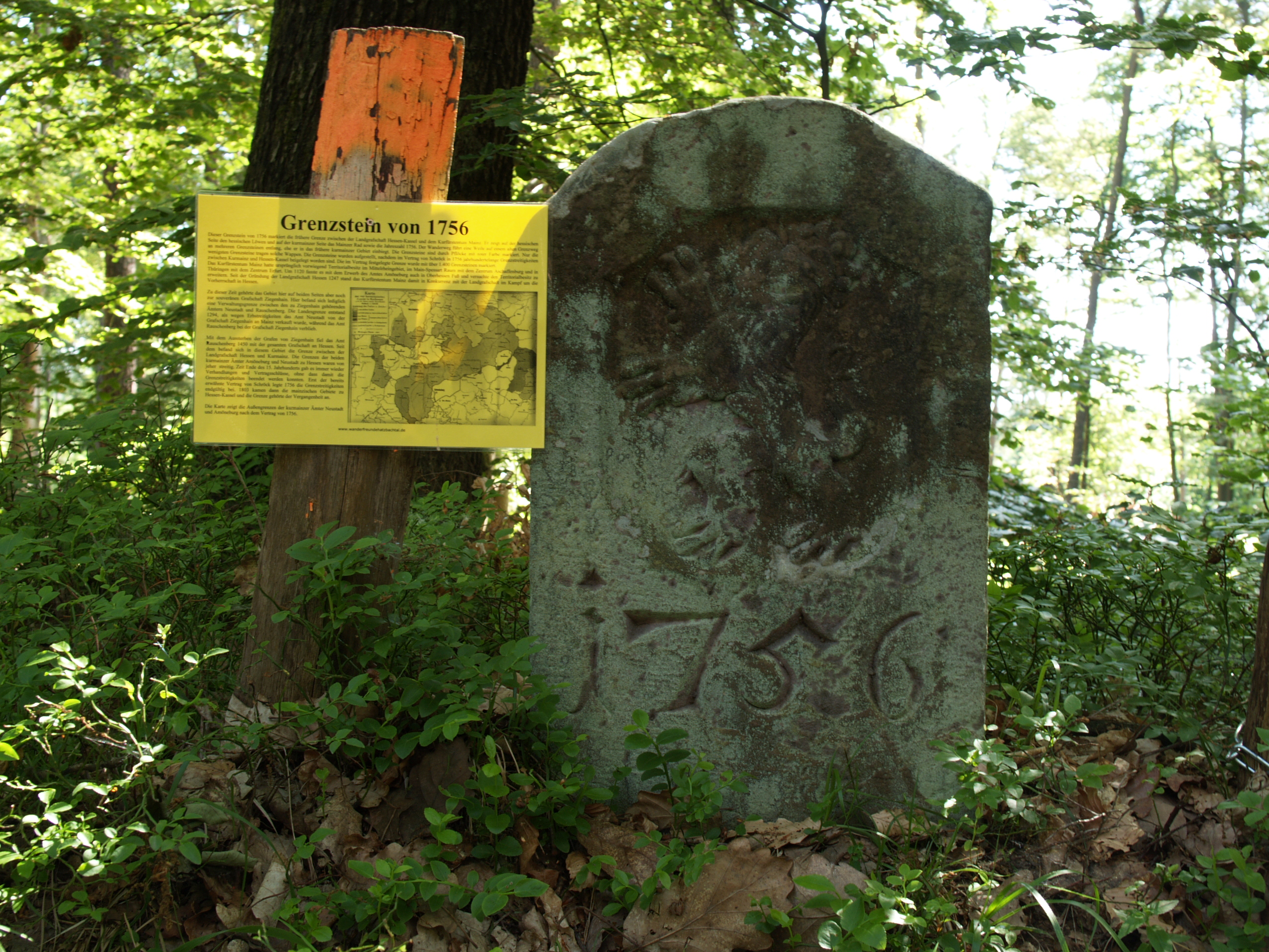 Grenzstein am permanenten Wanderweg Hatzbach